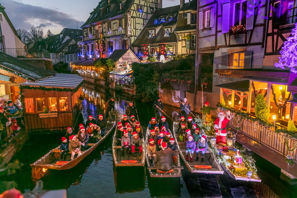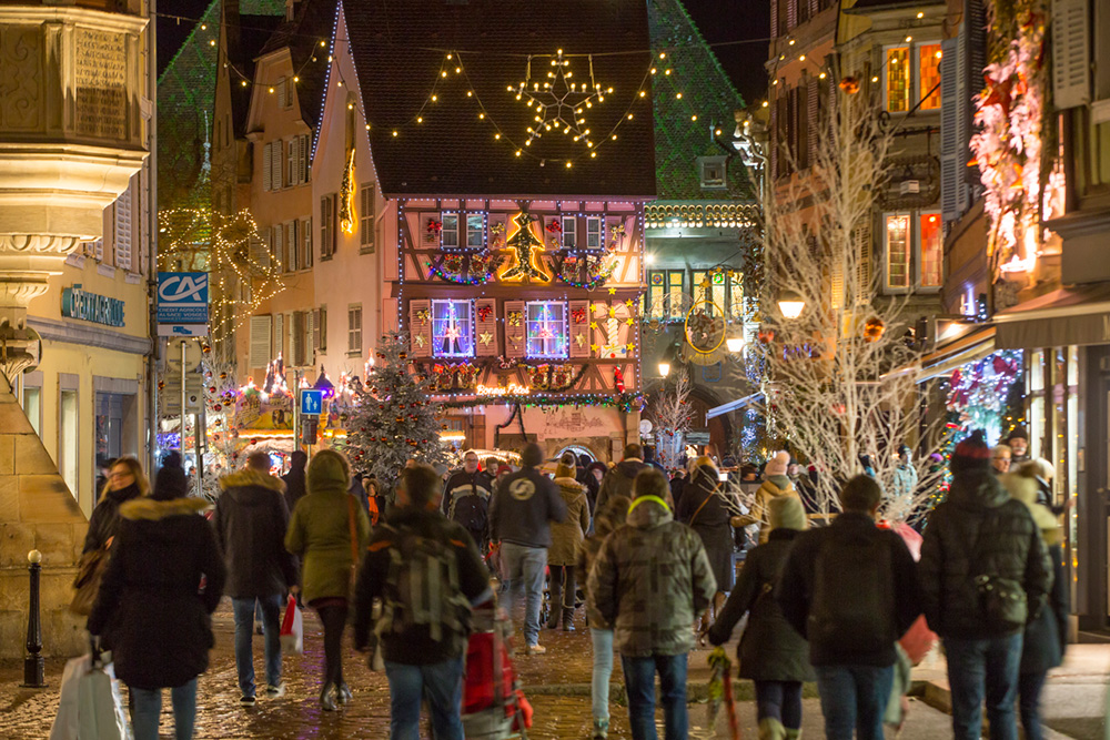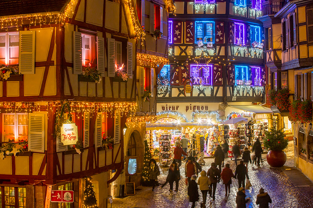 Les ruelles pavées, bordées de maisons à colombages hautes en couleurs, sont égayées par un décor hivernal époustouflant. Parée de ses plus belles lumières, la vieille ville devient un écrin de rêve pour une visite rythmée par les coutumes et traditions de Noël en Alsace.