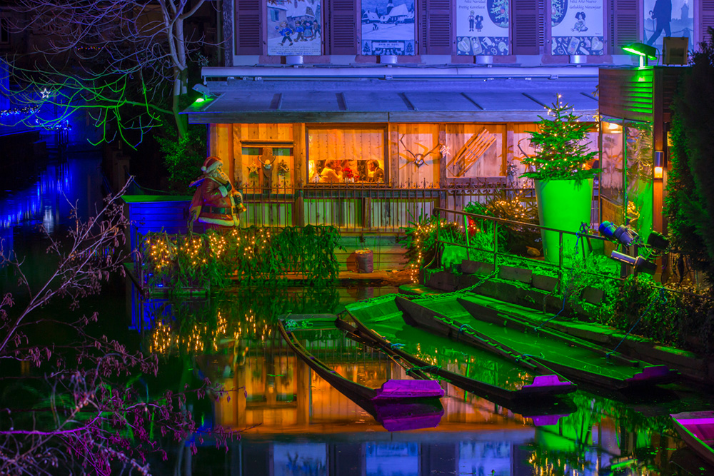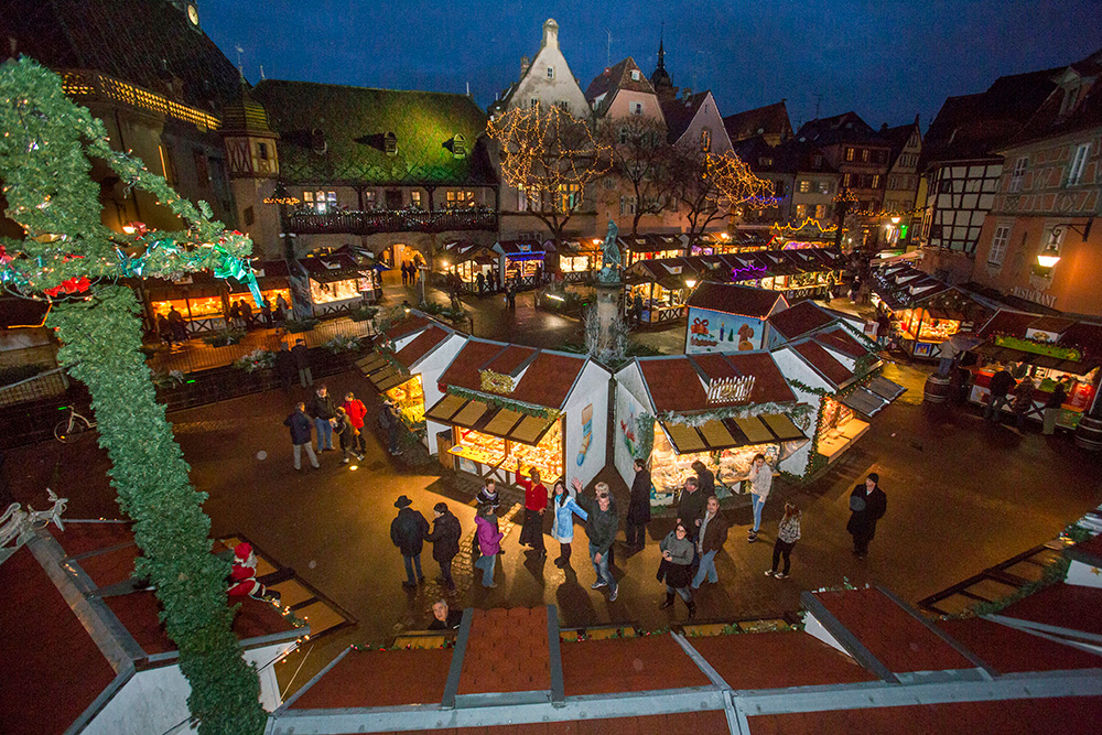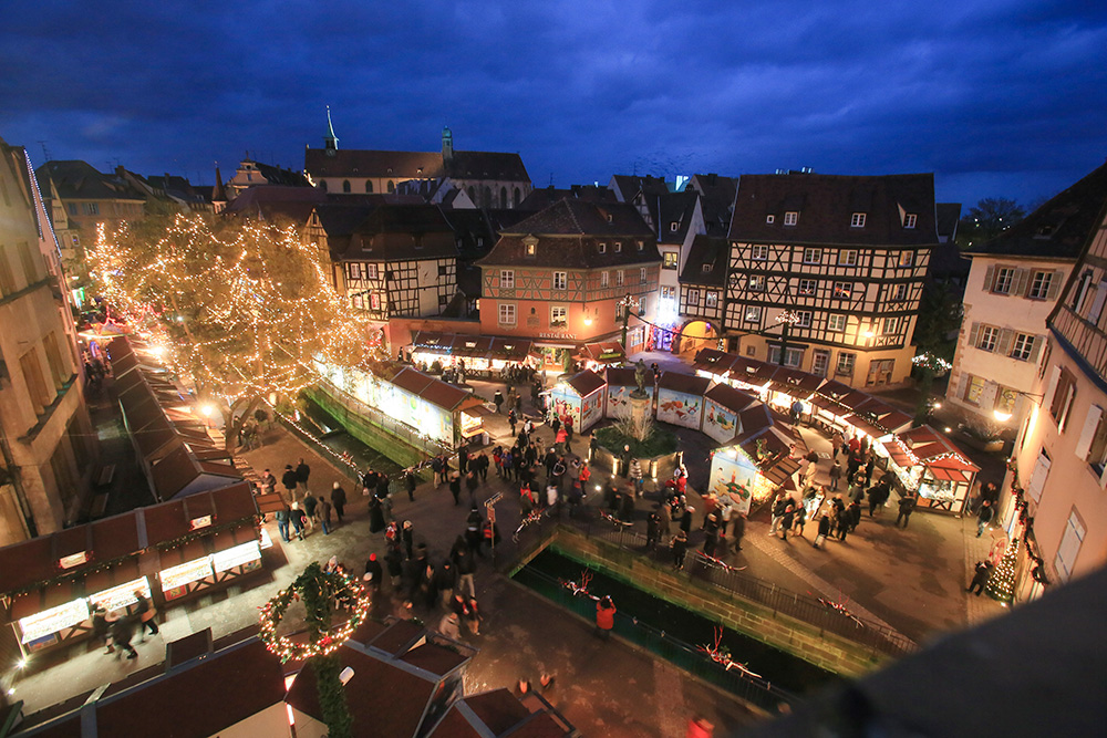 Partout où le regard se pose, il ne trouve que vitrines et maisons décorées dans une succession de rues et de ruelles animées. Y règnent aussi en maîtres, sublimant l’ambiance des lieux, des parfums de vin chaud, d’orange et de cannelle. Et que dire du subtil jeu de lumières s’appliquant, à la tombée de la nuit, à souligner les innombrables richesses architecturales de Colmar et entraînant les visiteurs dans un tourbillon temporel entre Moyen-âge et 19e siècle…