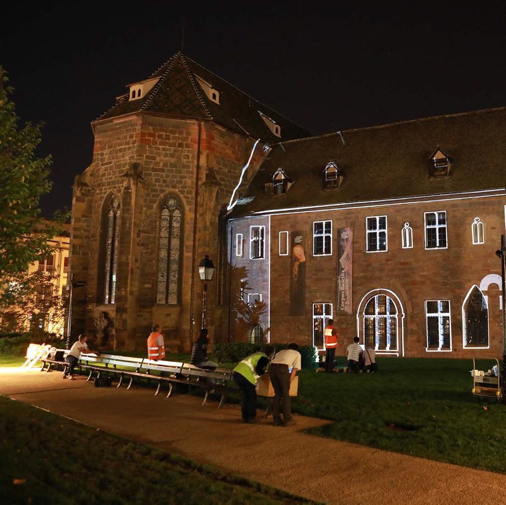 Le plan lumière propose l’installation de matériels pérennes permettant de plonger la ville, au travers de l’éclairage de son patrimoine, dans différentes ambiances lumineuses adaptées aux événements forts de la vie colmarienne. Sont ainsi retenus une vingtaine de sites, qui bénéficieront d’animations lumière (projections d’images et de vidéos) portées par diverses technologies : projecteurs, vidéoprojecteurs, etc.
