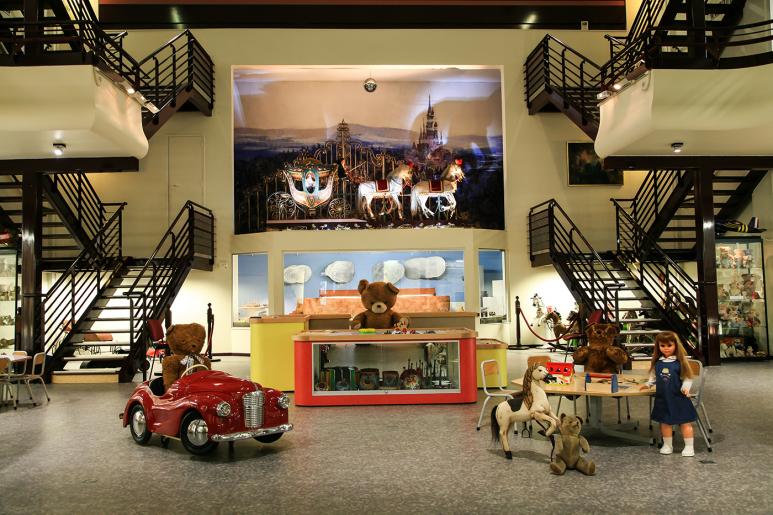 Le musée présente une collection de jouets du XIXe siècle à nos jours, qui en disent long sur l’évolution de notre société. Sur trois niveaux les univers se confondent ; jouets anciens côtoyant personnages de dessins animés ; ours anciens aux premières Barbie© en passant par les jeux vidéo, les Playmobil®, les modèles réduits, les robots ou les petits trains. Les jouets et jeux exposés proviennent du monde entier et appartiennent à différentes générations d’enfants. Curiosité du musée, un réseau de trains s’étend sur l’ensemble du deuxième étage.