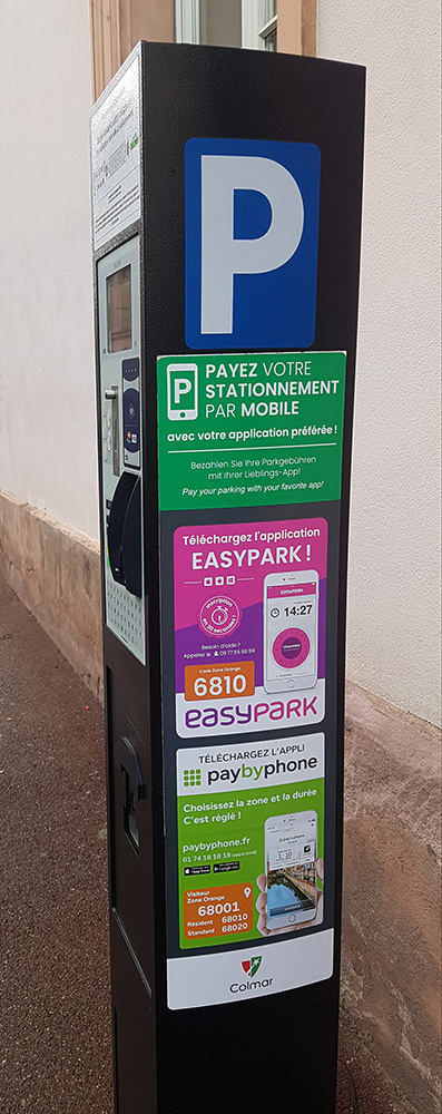 Dans le cadre de sa politique de mobilité et de gestion de la voirie et du stationnement, la ville de Colmar propose aux automobilistes de payer facilement leur stationnement grâce à des systèmes dématérialisés * : « PayByPhone » et « Easypark ».