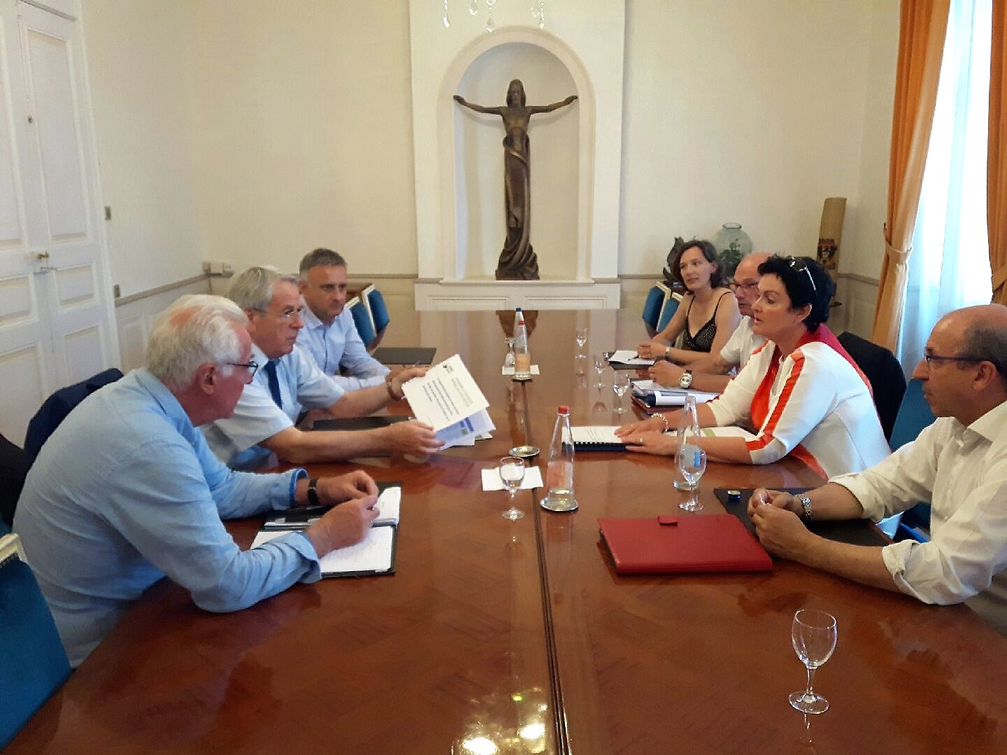 La présidente du CESEC, Véronique MURA, ainsi que les 3 vice-présidents de commissions ont présenté le 14 juin, dans le cadre des saisines, les conclusions des premières préconisations au Maire de Colmar. Le 1er adjoint au Maire, Yves HEMEDINGER, ainsi que l'adjoint au Maire, René FRIEH (référent CESEC) y ont également participé.